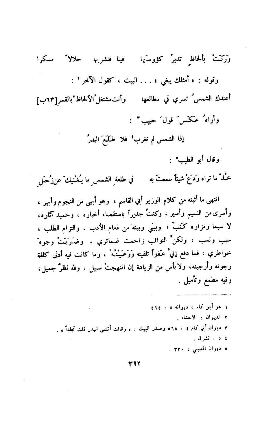 أعندك الشمس تسري في مطالعها ... وأنت مشتغل الألحاظ بالقمر [63ب] واراه عكس قول حبيب: