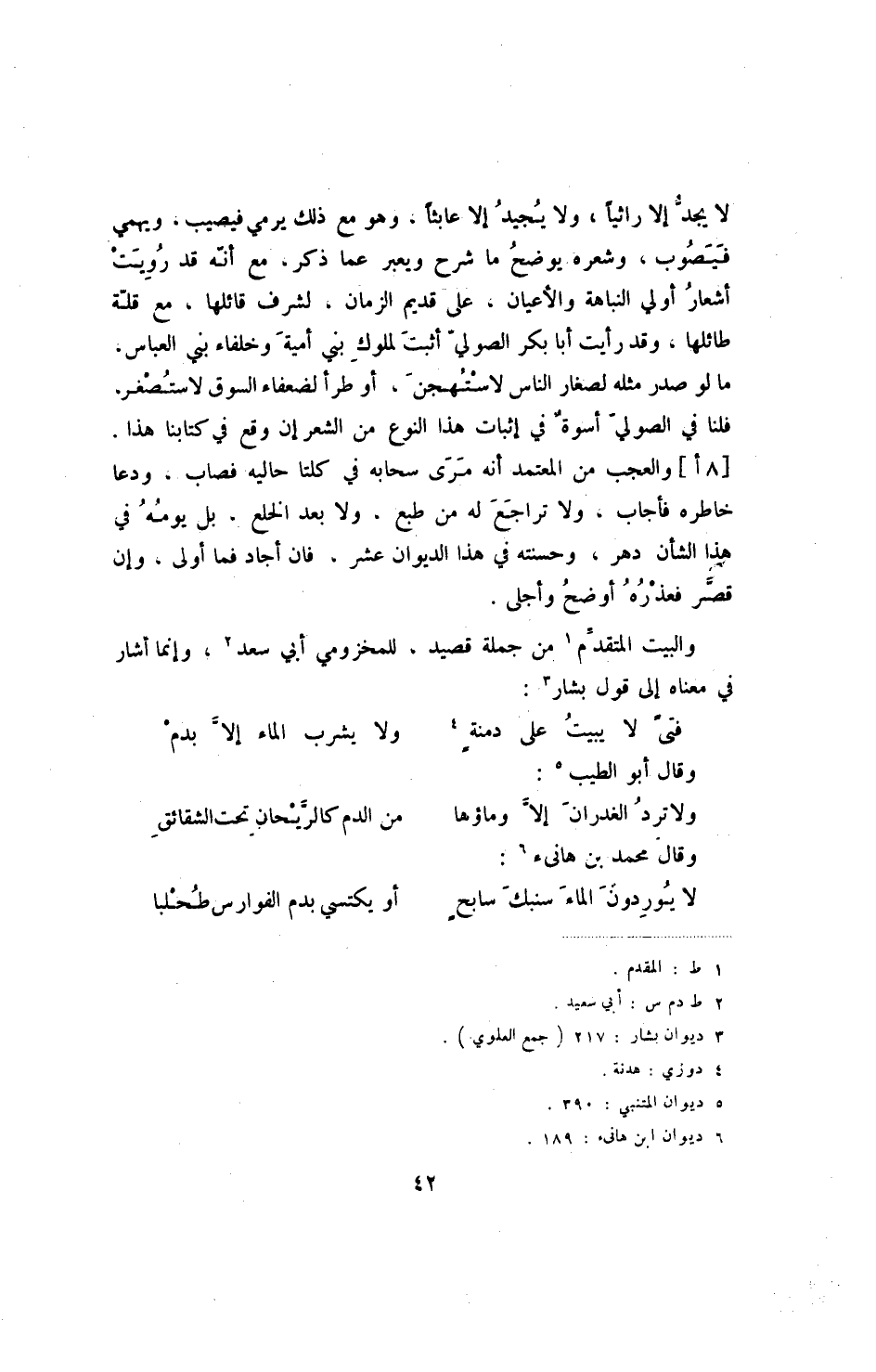 فتىً لا يبيت على دمنةٍ ... ولا يشرب الماء إلا بدم وقال أبو الطيب:
