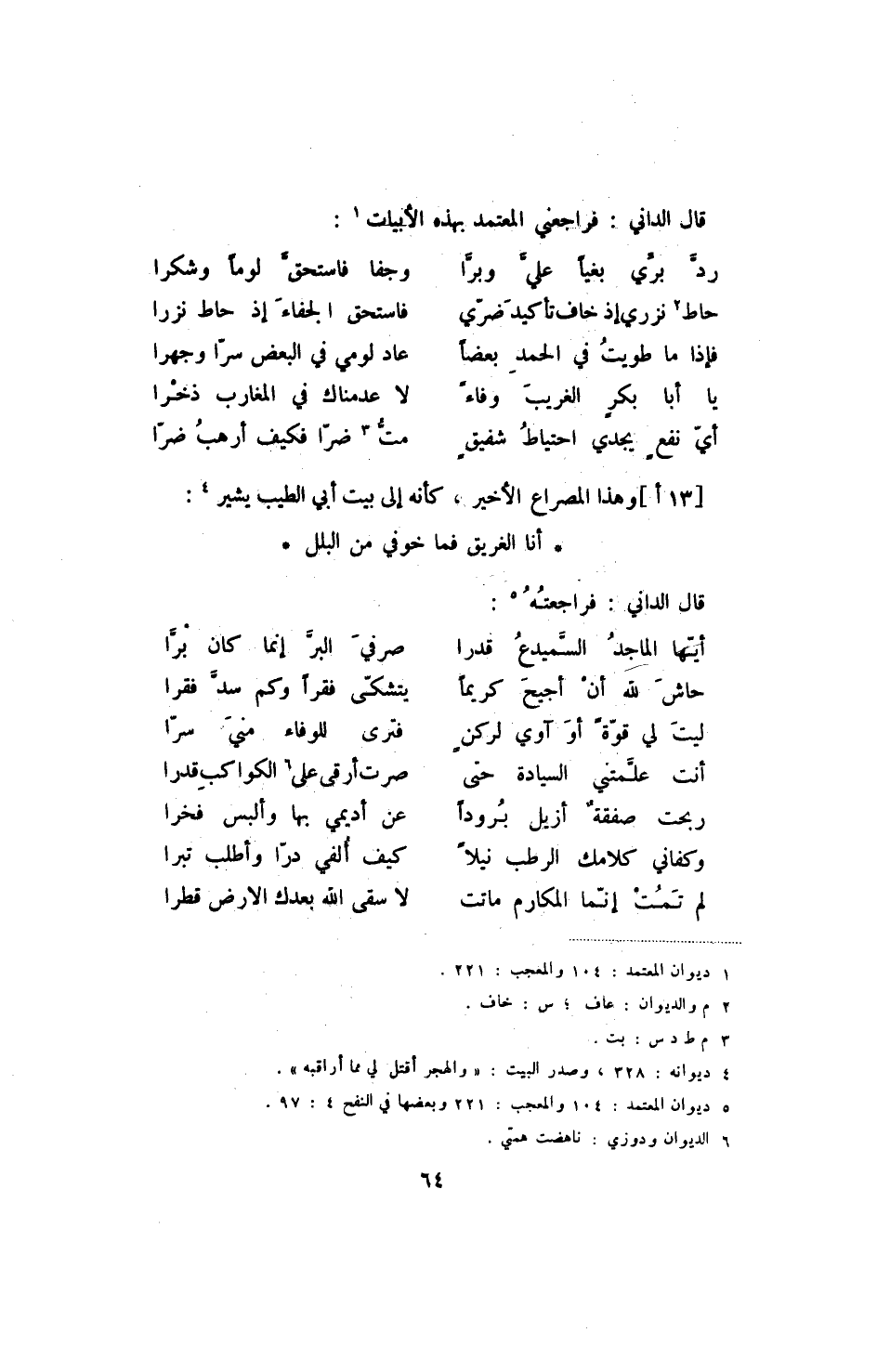 قال الداني: فراجعني المعتمد بهذه الأبيات: