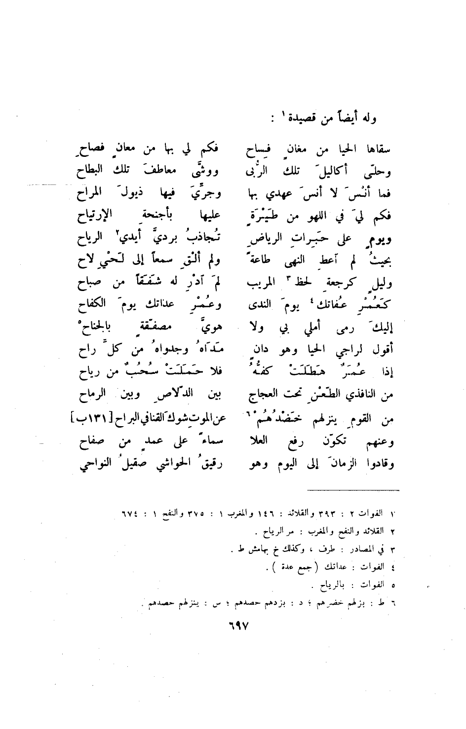 (2) القلائد والنفح والمغرب: مر الرياح.