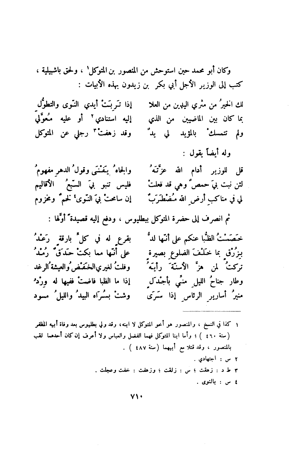 ولم تتمسك بالمؤيد لي يد ... وقد زهقت (3) رجلي عن المتوكل وله أيضاً يقول: