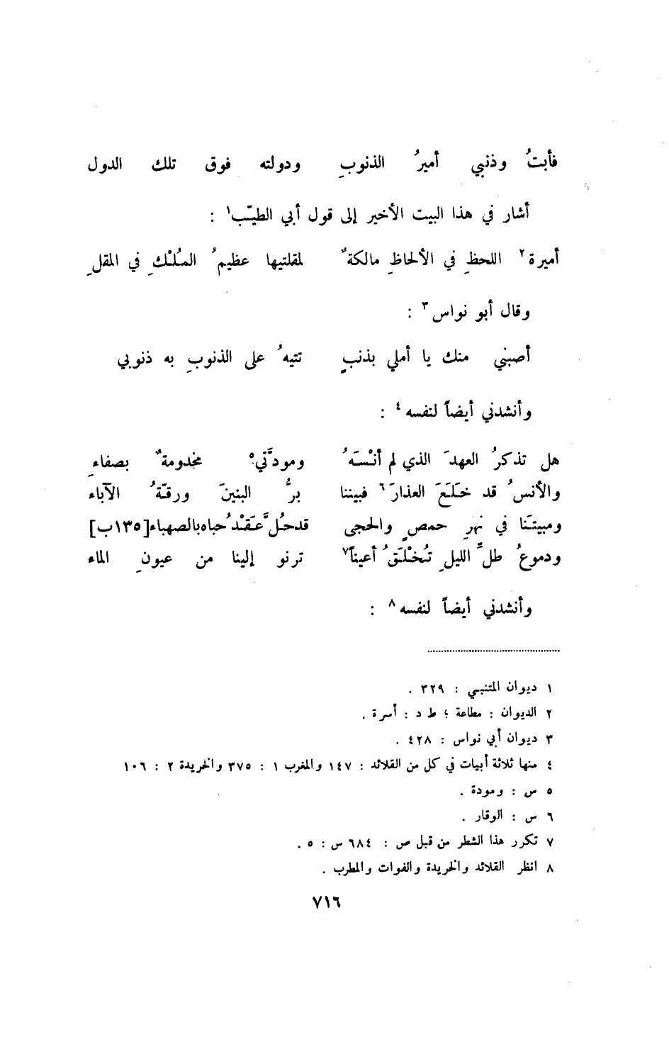فأبت وذنبي أمير الذنوب ... ودولته فوق تلك الدول أشار في هذا البيت الأخير إلى قول أبي الطيب (1) :