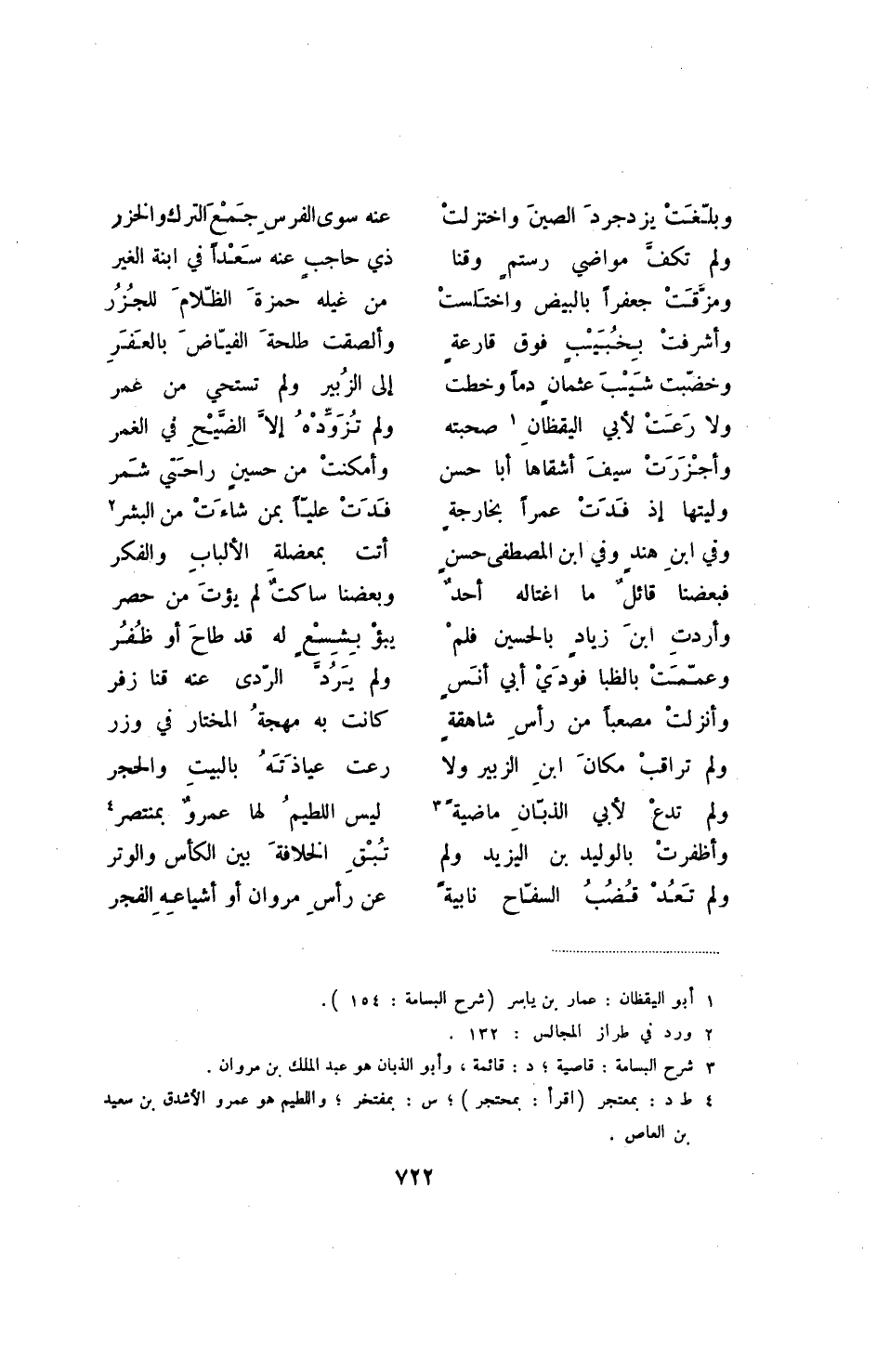 (3) شرح البسامة: قاصية؛ د: قائمة، وأبو الذبان هو عبد الملك بن مروان.