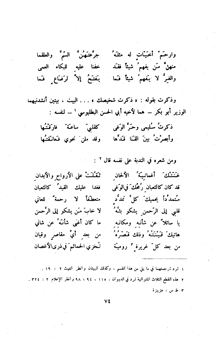 وأبصرت بين القنا قدها ... وقد ملن نحوي فعانقتها ومن شعره في الندبة على نفسه قال: