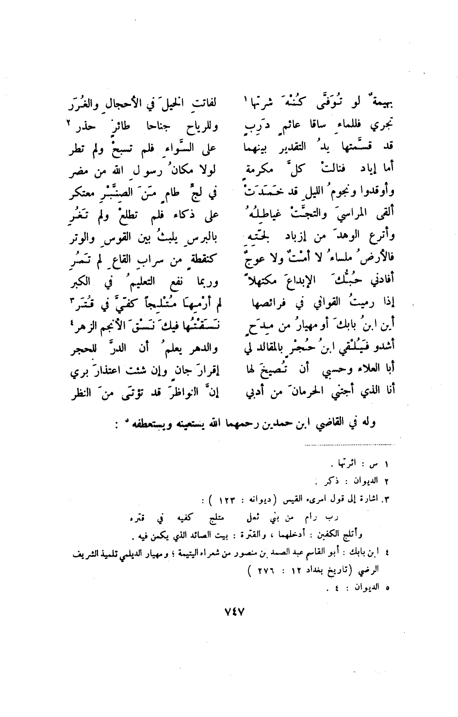 أنا الذي أجتني الحرمان من أدبي ... إن النواظر قد تؤتى من النظر وله في القاضي ابن حمدين رحمهما الله يستهينه ويستعطفه (5) :