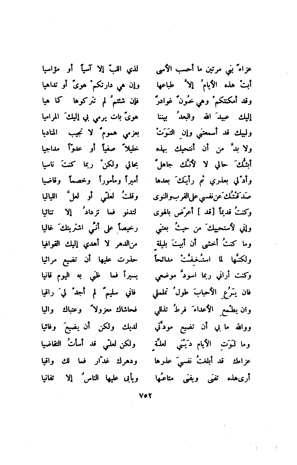 عزاءً بني مرتين ما أحسب الأسى ... لذي اللب إلا آسياً أو مؤاسيا