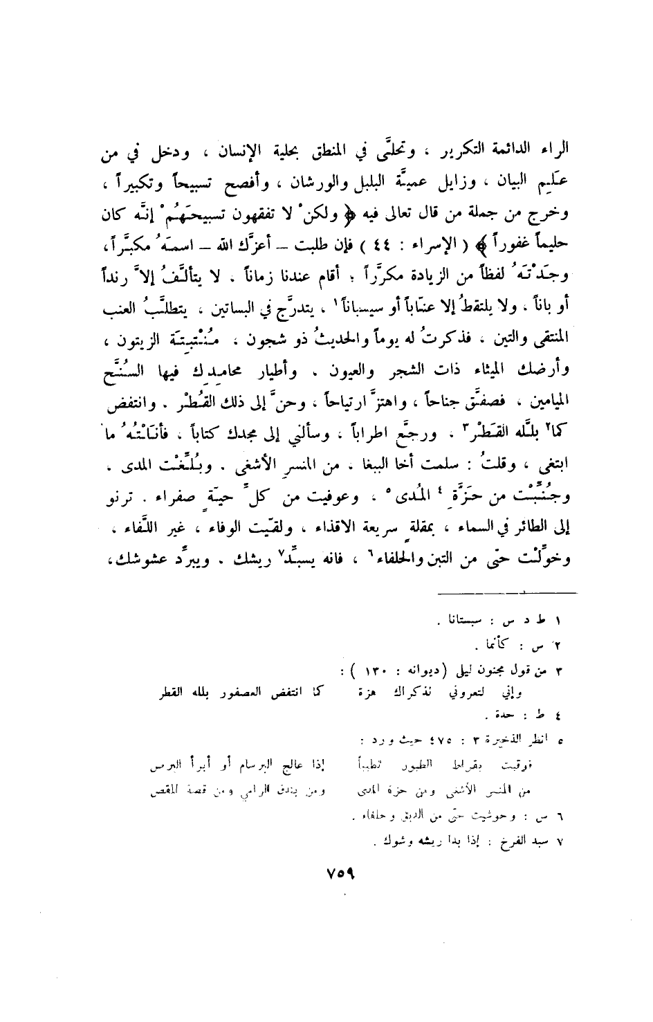 (3) من قول مجنون ليلى (ديوانه: 130) :