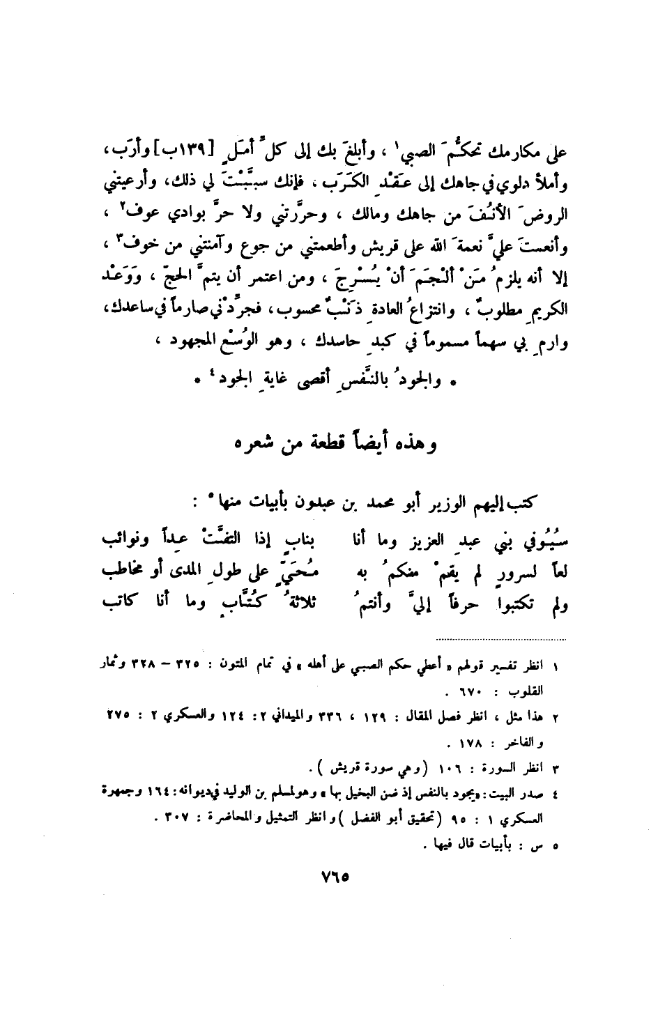 (4) صدر البيت: " يجود بالنفس إذ ضن البخيل بها " وهو لمسلم بن الوليد في ديوانه: 164 وجمهرة العسكري 1: 95 (تحقيق أبو الفضل) وانظر التمثيل والمحاضرة: 307.