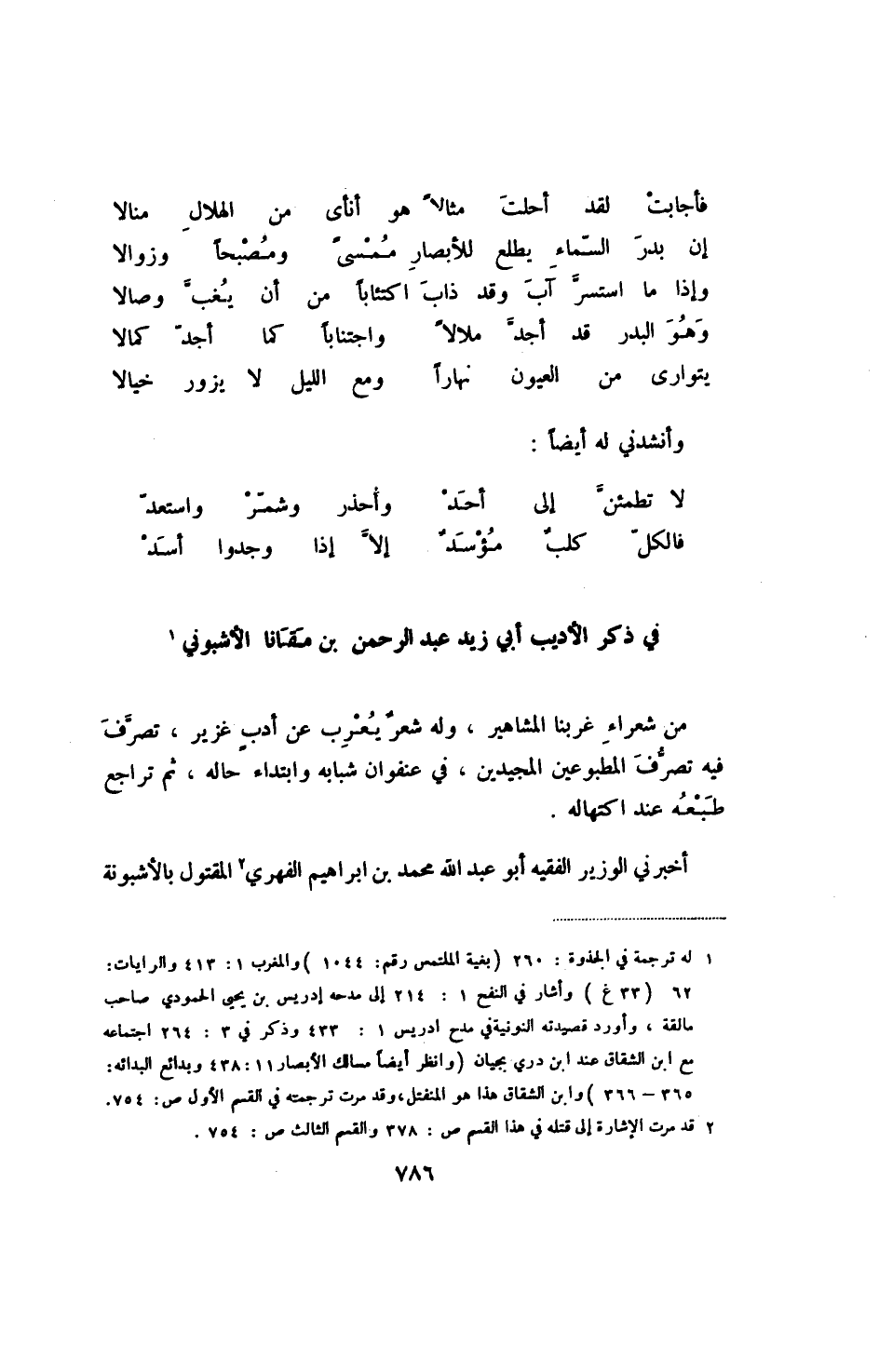 (1) له ترجمة في الجذوة: 260 (بغية الملتمس رقم 1044) والمغرب 1: 413 والرايات: 62 (33 غ) وأشار في النفح 1: 214 إلى مدحه إدريس بن يحيى الحمودي صاحب مقالة، وأورد قصيدته النونية في مدح إدريس 1: 433 وذكر في 3: 264 اجتماعه مع ابن الشقاق عند ابن دري بجيان (وانظر أيضاً مسالك الأبصار 11: 438 وبدائع البدائه: 365 - 366) وابن الشقاق هذا هو المنفتل، وقد مرت ترجمته في القسم الأول ص: 754.
