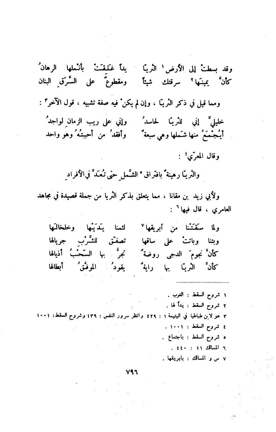 والثريا رهينة بافتراق (5) الشمل حتى تعد في الأفراد ... ولأبي زيد بن مقانا، مما يتعلق بذكر الثريا من جملة قصيدة في مجاهد العامري، قال فيها (6) :
