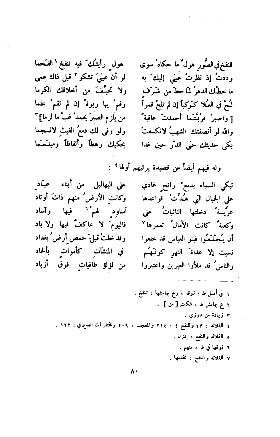 بكى حديثك حتى الدار حين غدا ... يحكيك رهطاً وألفاظاً ومبتسما وله فيهم أيضاً من قصيدة يرثيهم أولها:
