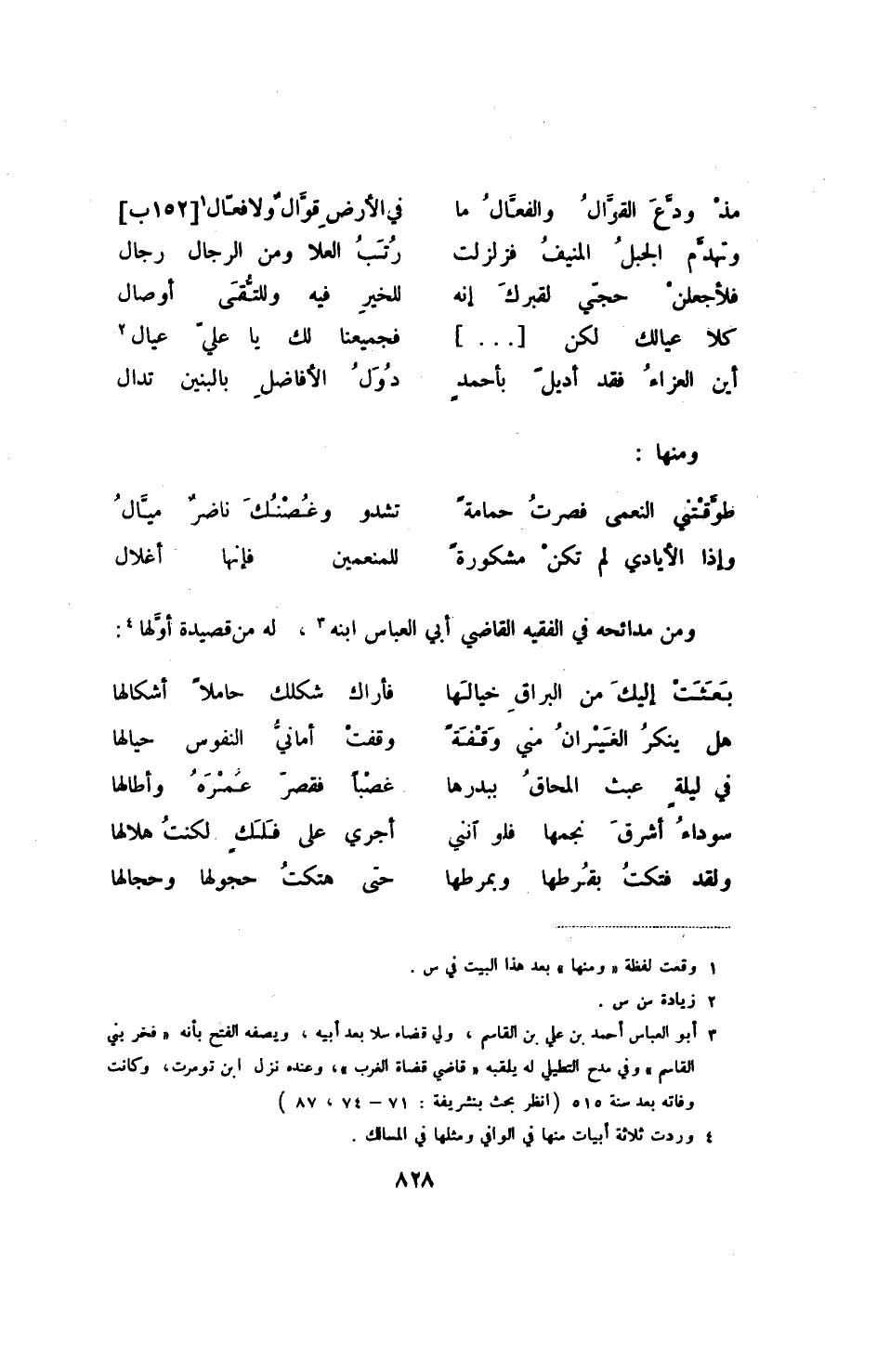 وإذا الأيادي لم تكن مشكورةً ... للمنعمين فإنها أغلال ومن مدائحه في الفقيه القاضي أبي العباس ابنه (3) ، له من قصيدة أولها (4) :