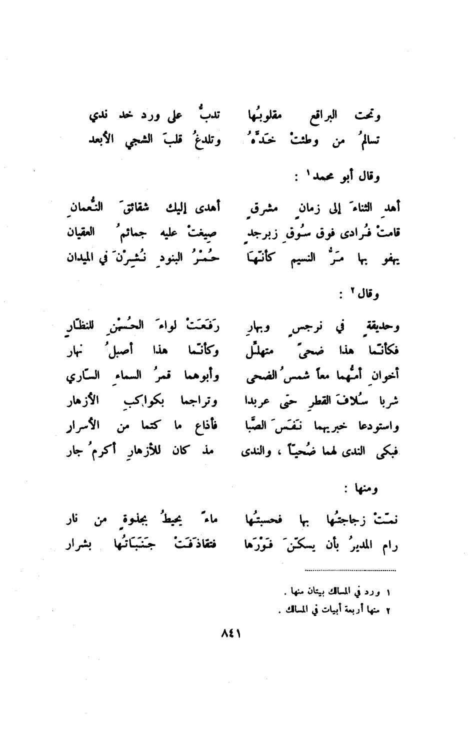 (2) منها أربعة أبيات في المسالك.