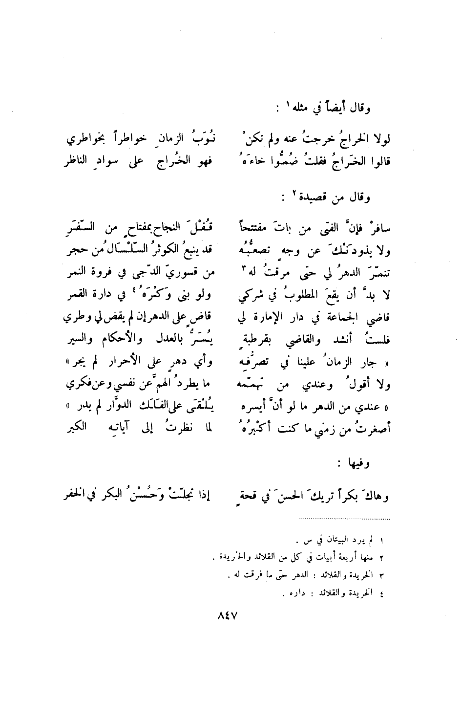(3) الخريدة والقلائد: الدهر حتى ما فرقت له.