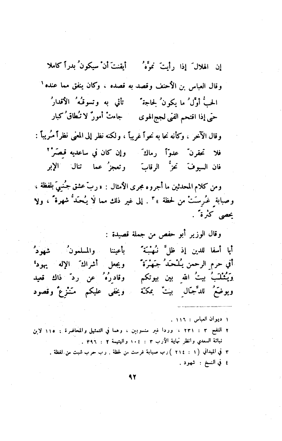 إن الهلال إذا رأيت نموه ... أيقنت أن سيكون بدراً كاملا وقال العباس بن الأحنف وقصد به قصده، وكان ينفق مما عنده: