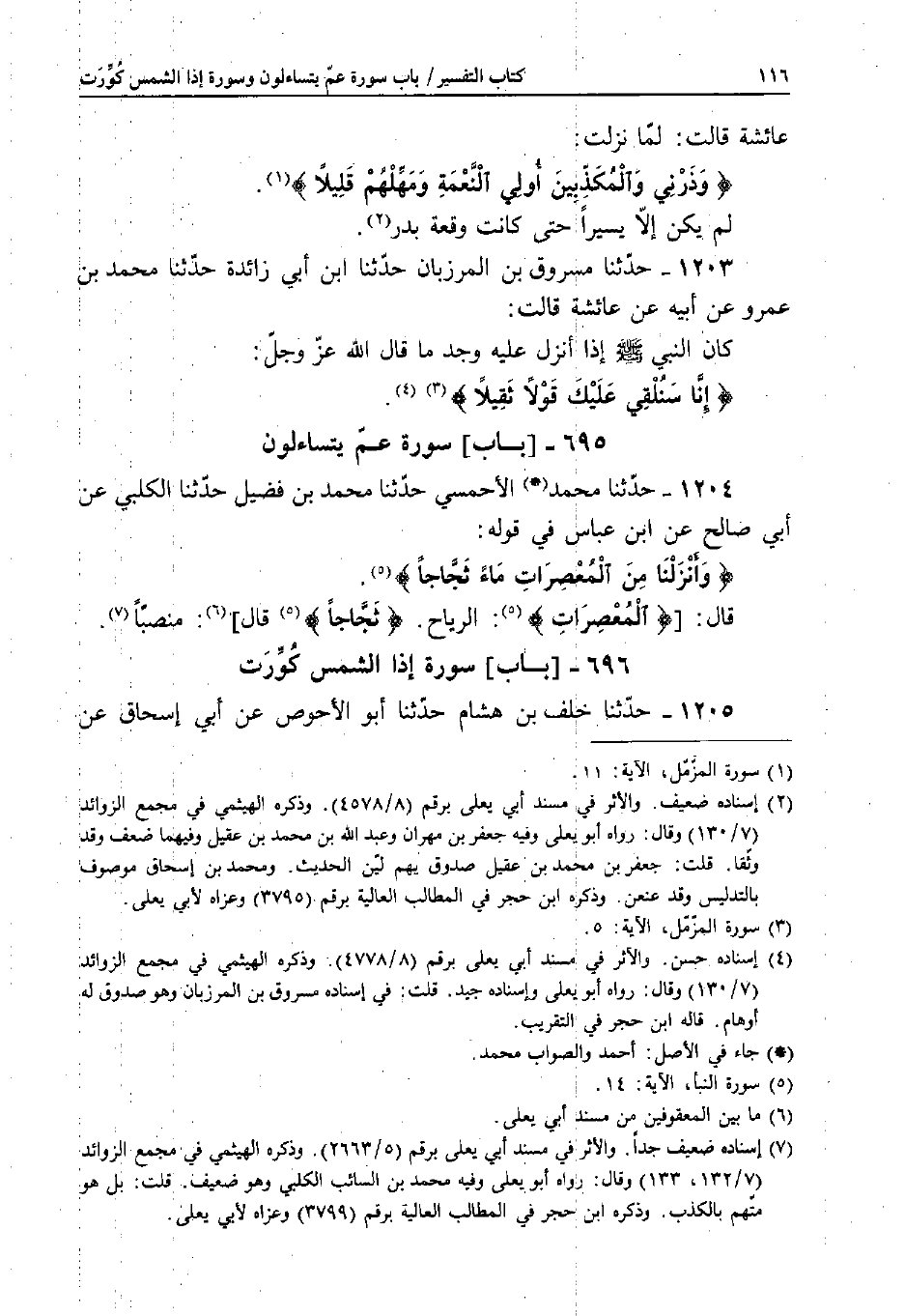 عَائِشَةَ قَالَتْ: لَمَّا نَزَلَتْ: {وَذَرْنِي وَالْمُكَذِّبِينَ أُولِي النَّعْمَةِ وَمَهِّلْهُمْ قَلِيلا} [المزمل: 11] .