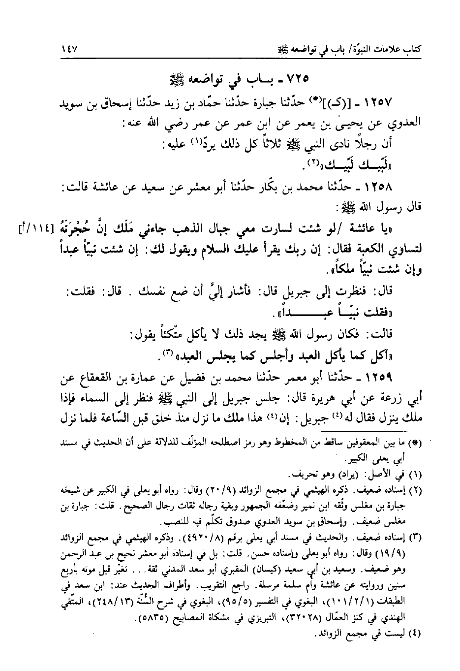 1259 - حَدَّثَنَا أَبُو مَعْمَرٍ، حَدَّثَنَا مُحَمَّدُ بْنُ فُضَيْلٍ، عَنْ عُمَارَةَ بْنِ الْقَعْقَاعِ، عَنْ أَبِي زَرْعَةَ، عَنْ أَبِي هُرَيْرَةَ قَالَ: جَلَسَ جِبْرِيلُ إِلَى النَّبِيِّ صَلَّى اللَّهُ عَلَيْهِ وَسَلَّمَ فَنَظَرَ إِلَى السَّمَاءِ فَإِذَا مَلَكٌ يَنْزِلُ فَقَالَ لَهُ جِبْرِيلُ: إِنَّ هَذَا مَلَكٌ مَا نَزَلَ مُنْذُ خُلِقَ قَبْلَ السَّاعَةِ فَلَمَّا نَزَلَ