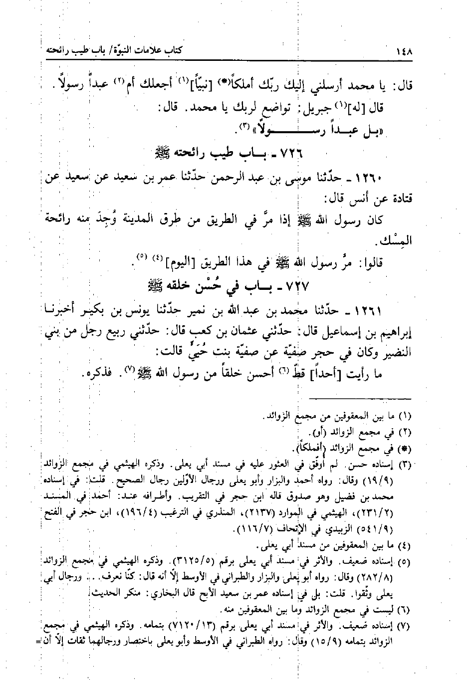 1260 - حَدَّثَنَا مُوسَى بْنُ عَبْدِ الرَّحْمَنِ، حَدَّثَنَا عُمَرُ بْنُ سَعِيدٍ، عَنْ سَعِيدٍ، عَنْ قَتَادَةَ، عَنْ أَنَسٍ قَالَ: كَانَ رَسُولُ اللَّهِ صَلَّى اللَّهُ عَلَيْهِ وَسَلَّمَ إِذَا مَرَّ فِي الطَّرِيقِ مِنْ طُرُقِ الْمَدِينَةِ وَجَدَ مِنْهُ رَائِحَةَ الْمِسْكِ.