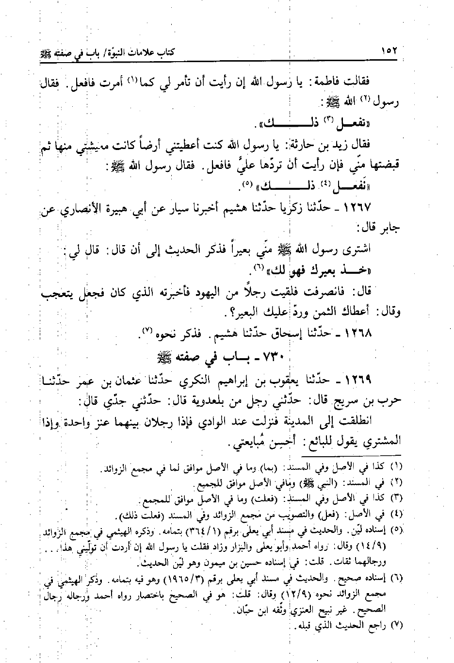 1267 - حَدَّثَنَا زَكَرِيَّا، حَدَّثَنَا هُشَيْمٌ، أَخْبَرَنَا سَيَّارٌ، عَنْ أَبِي هُبَيْرَةَ الأَنْصَارِيِّ، عَنْ جَابِرٍ قَالَ: اشْتَرَى رَسُولُ اللَّهِ صَلَّى اللَّهُ عَلَيْهِ وَسَلَّمَ مِنِّي بَعِيرًا فَذَكَرَ الْحَدِيثَ إِلَى أَنْ قَالَ: قَالَ لِي: «خُذْ بَعِيرَكَ فَهُوَ لَكَ» .
