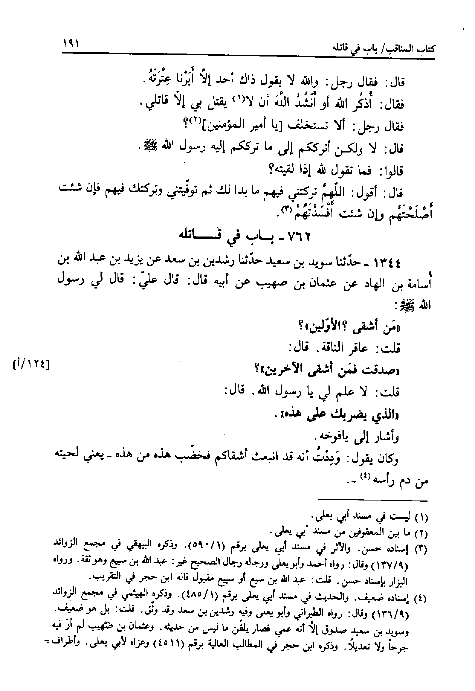 وَكَانَ يَقُولُ: وَدِدْتُ أَنَّهُ قَدِ انْبَعَثَ أَشْقَاكُمْ فَخَضَّبَ هَذِهِ مِنْ هَذِهِ - يَعْنِي لِحْيَتَهُ مِنْ دَمِ رَأْسِهِ -