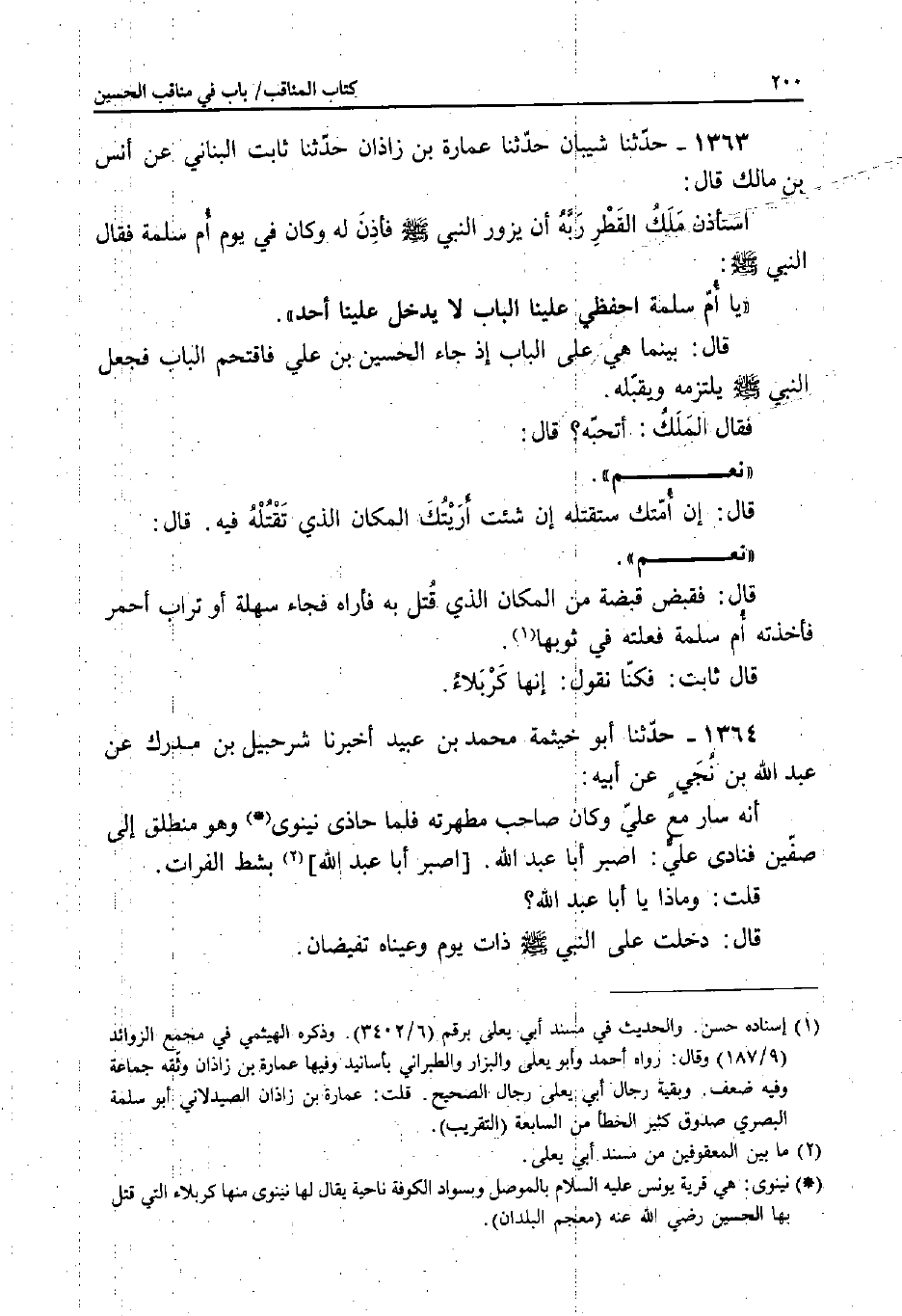 1364 - حَدَّثَنَا أَبُو خَيْثَمَةَ مُحَمَّدُ بْنُ عُبَيْدٍ، أَخْبَرَنَا شُرَحْبِيلُ بْنُ مُدْرِكٍ، عَنْ عَبْدِ اللَّهِ بْنِ نُجِيَ، عَنْ أَبِيهِ: أَنَّهُ سَارَ مَعَ عَلِيٍّ وَكَانَ صَاحِبَ مَطْهَرَتِهِ؛ فَلَمَّا حَاذَى نِينَوَى وَهُوَ مِنْطَلِقٌ إِلَى صِفِّينَ فَنَادَى عَلِيٌّ: اصْبِرْ أَبَا عَبْدِ اللَّهِ.