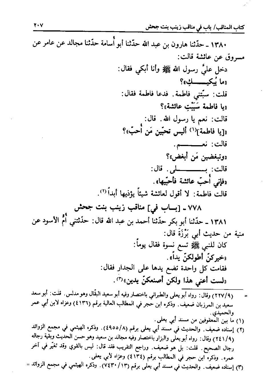 1380 - حَدَّثَنَا هَارُونُ بْنُ عَبْدِ اللَّهِ، حَدَّثَنَا أَبُو أُسَامَةَ، حَدَّثَنَا مُجَالِدٌ، عَنْ عَامِرٍ، عَنْ مَسْرُوقٍ، عَنْ عَائِشَةَ قَالَتْ: دَخَلَ عَلَيَّ رَسُولُ اللَّهِ صَلَّى اللَّهُ عَلَيْهِ وَسَلَّمَ وَأَنَا أَبْكِي فَقَالَ: «مَا يُبْكِيكِ» ؟ قُلْتُ: سَبَّتْنِي فَاطِمَةُ.