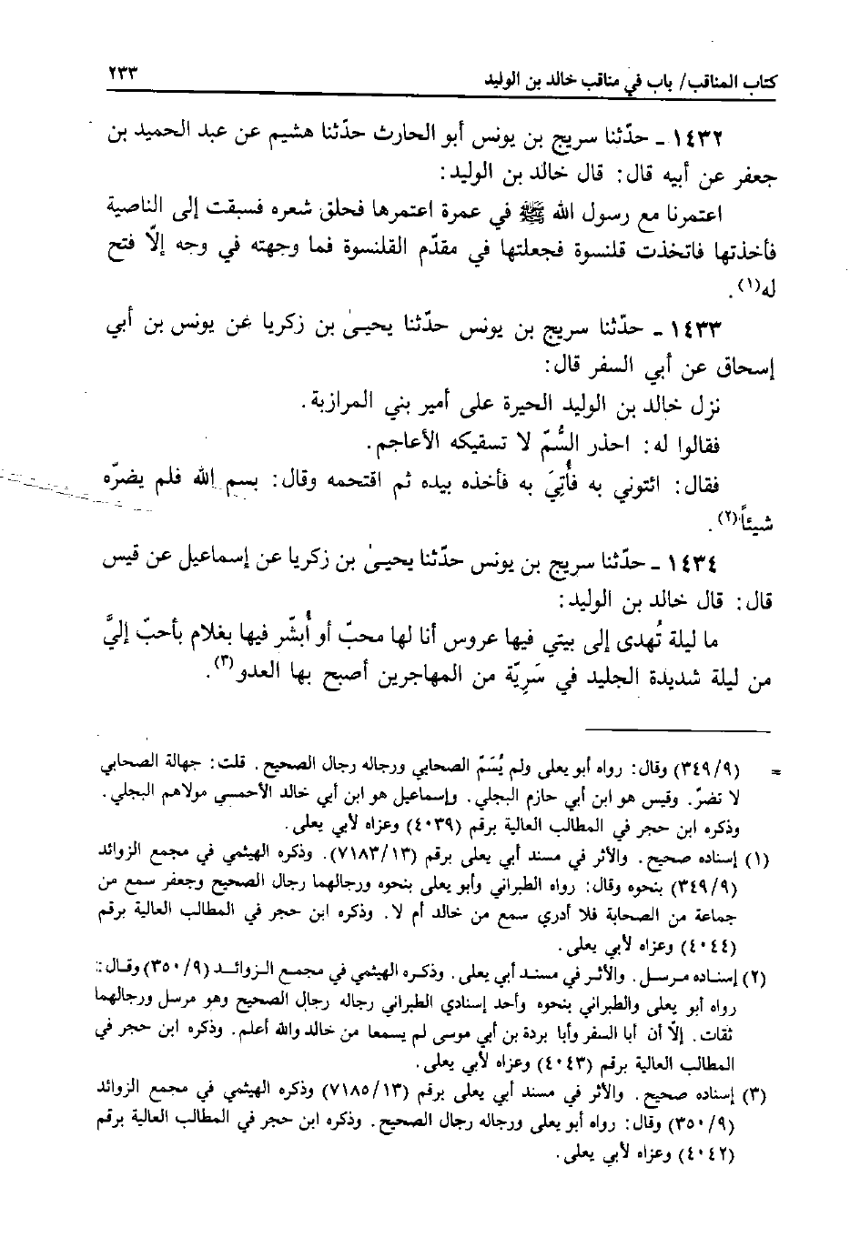 1433 - حَدَّثَنَا سُرَيْجُ بْنُ يُونُسَ، حَدَّثَنَا يَحْيَى بْنُ زَكَرِيَّا، عَنْ يُونُسَ بْنِ أَبِي إِسْحَاقَ، عَنْ أَبِي السَّفَرِ قَالَ: نَزَلَ خَالِدُ بْنُ الْوَلِيدِ الْحَيْرَةَ عَلَى أَمِيرِ بَنِي الْمَرَازِبَةِ.