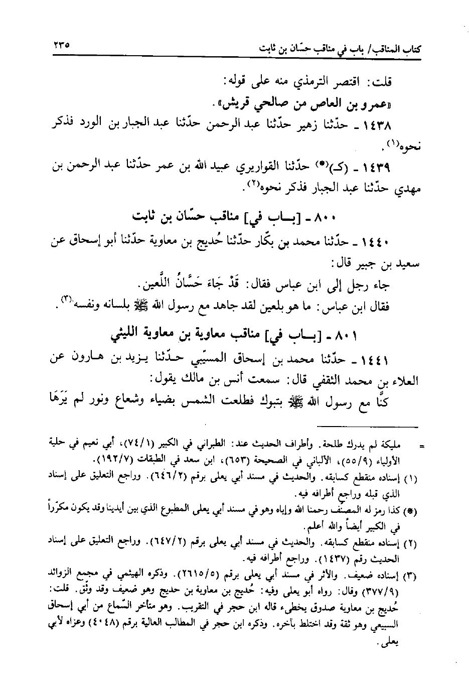 قُلْتُ: اقْتَصَرَ التِّرْمِذِيُّ مِنْهُ عَلَى قَوْلِهِ: «عَمْرُو بْنُ الْعَاصِ مِنْ صَالِحِي قُرَيْشٍ» .