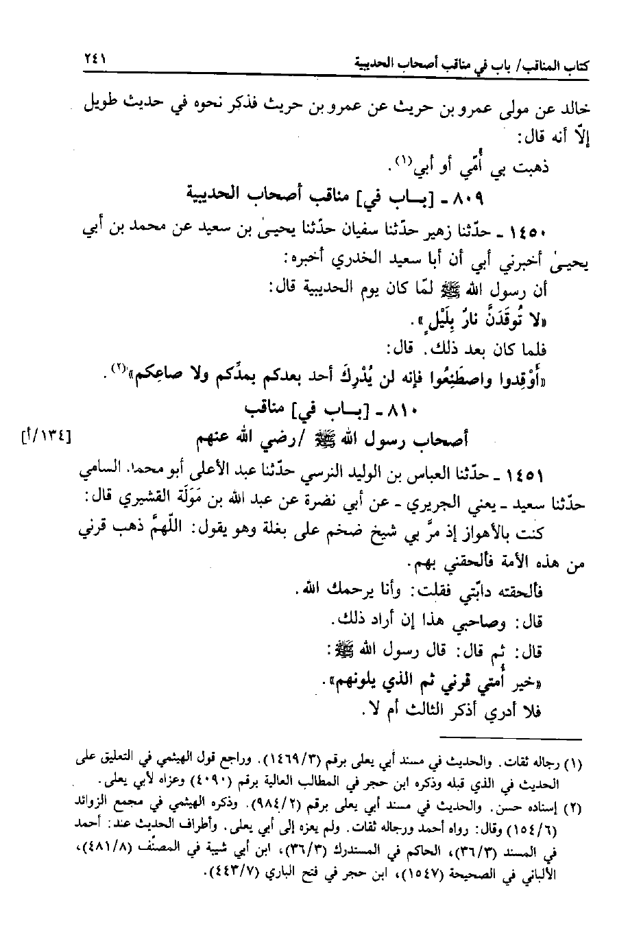 قَالَ: ثُمَّ قَالَ: قَالَ رَسُولُ اللَّهِ صَلَّى اللَّهُ عَلَيْهِ وَسَلَّمَ: «خَيْرُ أِمَّتِي قَرْنِي ثُمَّ الَّذِينَ يَلُونَهُمْ» .