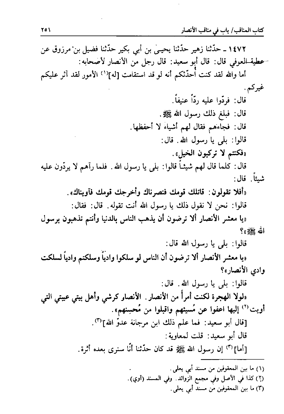 1472 - حَدَّثَنَا زُهَيْرٌ، حَدَّثَنَا يَحْيَى بْنُ أَبِي بُكَيْرٍ، حَدَّثَنَا فُضَيْلُ بْنُ مَرْزُوقٍ، عَنْ عَطِيَّةَ الْعَوْفِيِّ قَالَ: قَالَ أَبُو سَعِيدٍ: قَالَ رَجُلٌ مِنَ الأَنْصَارِ لأَصْحَابِهِ: أَمَا وَاللَّهِ لَقَدْ كُنْتُ أُحَدِّثُكُمْ أَنَّهُ لَوْ قَدِ اسْتَقَامَتْ لَهُ الأُمُورُ لَقَدْ آثَرَ عَلَيْكُمْ غَيْرَكُمْ.