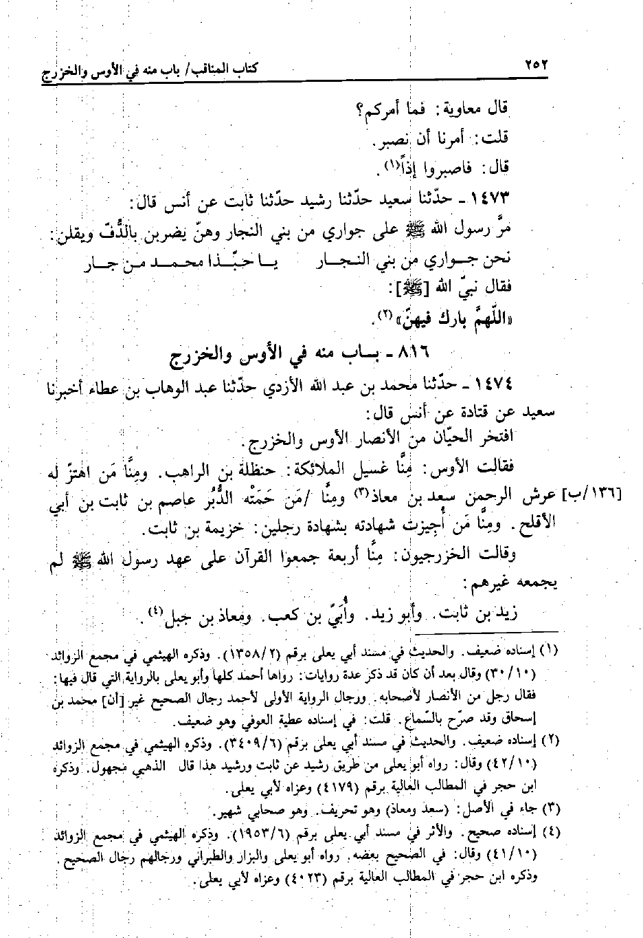 1474 - حَدَّثَنَا مُحَمَّدُ بْنُ عَبْدِ اللَّهِ الأَزْدِيُّ، حَدَّثَنَا عَبْدُ الْوَهَّابِ بْنُ عَطَاءٍ، أَخْبَرَنَا سَعِيدٌ، عَنْ قَتَادَةَ، عَنْ أَنَسٍ قَالَ: افْتَخَرَ الْحَيَّانِ مِنَ الأَنْصَارِ الأَوْسُ وَالْخَزْرَجُ.