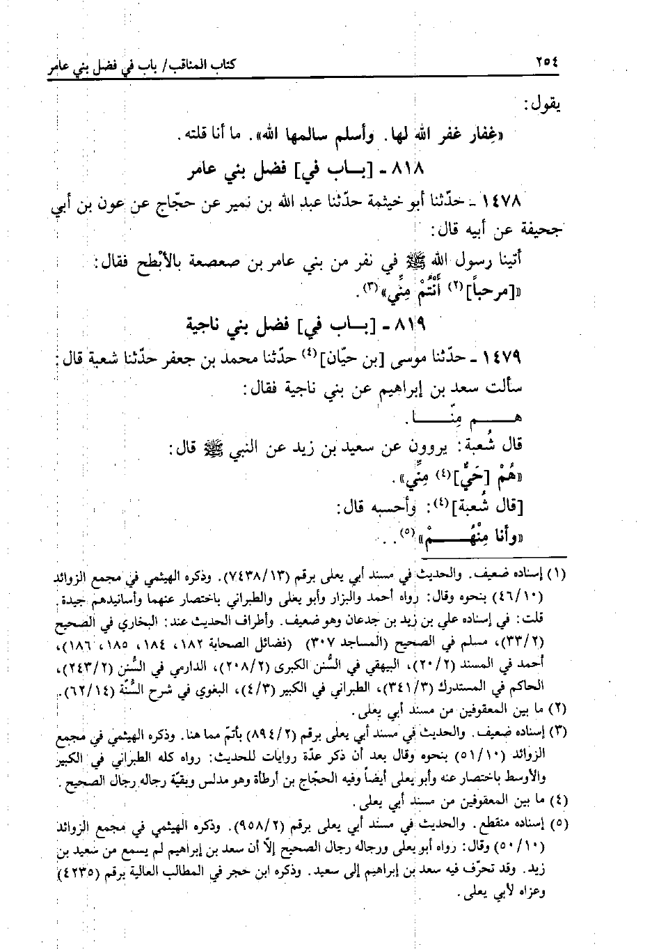 1478 - حَدَّثَنَا أَبُو خَيْثَمَةَ، حَدَّثَنَا عَبْدُ اللَّهِ بْنُ نُمَيْرٍ، عَنْ حَجَّاجٍ، عَنْ عَوْنِ بْنِ أَبِي جُحَيْفَةَ، عَنْ أَبِيهِ قَالَ: أَتَيْنَا رَسُولَ اللَّهِ صَلَّى اللَّهُ عَلَيْهِ وَسَلَّمَ فِي نَفَرٍ مِنْ بَنِي عَامِرِ بْنِ صَعْصَعَةَ بِالأَبْطَحِ فَقَالَ: «مَرْحَبًا أَنْتُمْ مِنِّي» .