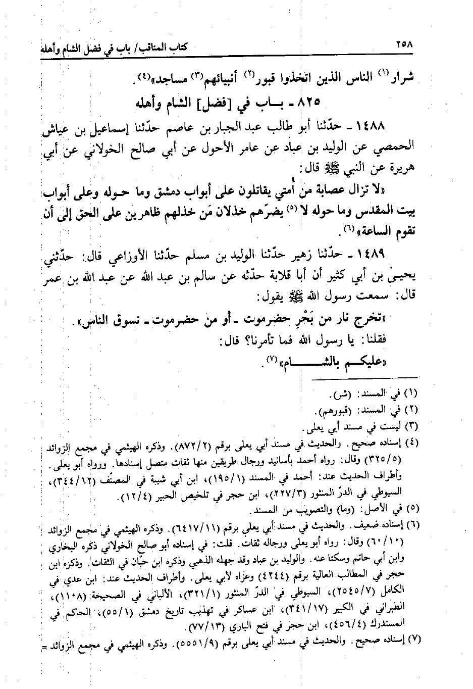 1488 - حَدَّثَنَا أَبُو طَالِبٍ عَبْدُ الْجَبَّارِ بْنِ عَاصِمٍ، حَدَّثَنَا إِسْمَاعِيلُ بْنُ عَيَّاشٍ الْحِمْصِيُّ، عَنِ الْوَلِيدِ بْنِ عَبَّادٍ، عَنْ عَامِرٍ الأَحْوَلِ، عَنْ أَبِي صَالِحٍ الْخَوْلانِيِّ، عَنْ أَبِي هُرَيْرَةَ، عَنِ النَّبِيِّ صَلَّى اللَّهُ عَلَيْهِ وَسَلَّمَ قَالَ: «لا تَزَالُ عِصَابَةٌ مِنْ أُمَّتِي يُقَاتِلُونَ عَلَى أَبْوَابِ دِمَشْقَ وَمَا حَوْلَهُ، وَعَلَى أَبْوَابِ بَيْتِ الْمَقْدِسِ وَمَا حَوْلَهُ لا يَضُرُّهُمْ خُذْلانُ مُنْ خَذَلَهُمْ ظَاهِرِينَ عَلَى الْحَقِّ إِلَى أَنْ تَقُومَ السَّاعَةُ» .