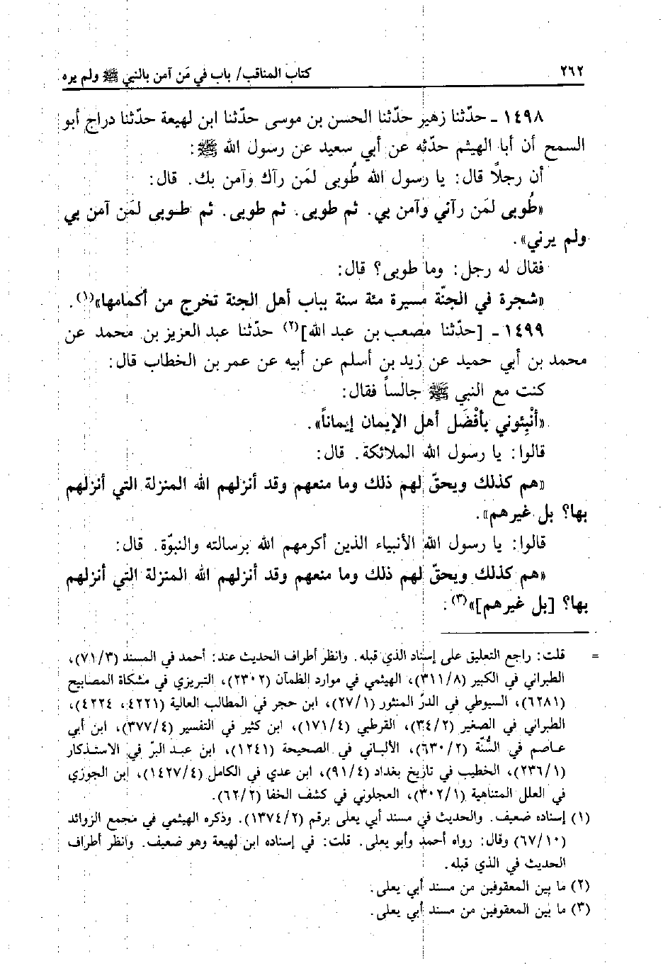 1499 - حَدَّثَنَا مُصْعَبُ بْنُ عَبْدِ اللَّهِ، حَدَّثَنَا عَبْدُ الْعَزِيزِ بْنُ مُحَمَّدٍ، عَنْ مُحَمَّدِ بْنِ أَبِي حُمَيْدٍ، عَنْ زَيْدِ بْنِ أَسْلَمَ، عَنْ أَبِيهِ، عَنْ عُمَرَ بْنِ الْخَطَّابِ قَالَ: كُنْتُ مَعَ النَّبِيِّ صَلَّى اللَّهُ عَلَيْهِ وَسَلَّمَ جَالِسًا فَقَالَ: «أَنْبِئُونِي بِأَفْضَلِ أَهْلِ الإِيمَانِ إِيمَانًا» .