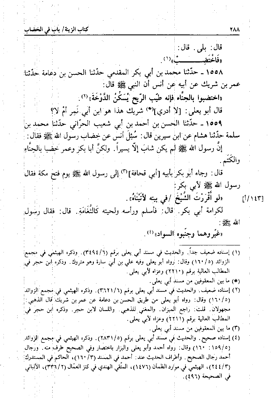 وَلَكِنَّ أَبَا بَكْرٍ وَعُمَرَ خَضَبَا بِالْحِنَّاءِ وَالْكَتَمِ.