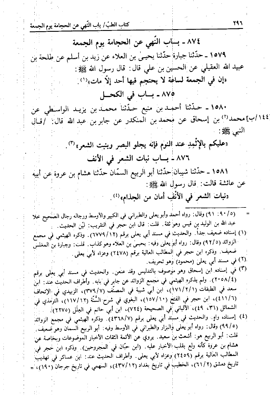1580 - حَدَّثَنَا أَحْمَدُ بْنُ مَنِيعٍ، حَدَّثَنَا مُحَمَّدُ بْنُ يَزِيدَ الْوَاسِطِيُّ، عَنْ مُحَمَّدِ بْنِ إِسْحَاقَ، عَنْ مُحَمَّدِ بْنِ الْمُنْكَدِرِ، عَنْ جَابِرِ بْنِ عَبْدِ اللَّهِ قَالَ: قَالَ النَّبِيُّ صَلَّى اللَّهُ عَلَيْهِ وَسَلَّمَ: «عَلَيْكُمْ بِالإثْمِدِ عِنْدَ النَّوْمِ فَإِنَّهُ يَجْلُو الْبَصَرَ وَيُنْبِتُ الشَّعْرَ» .