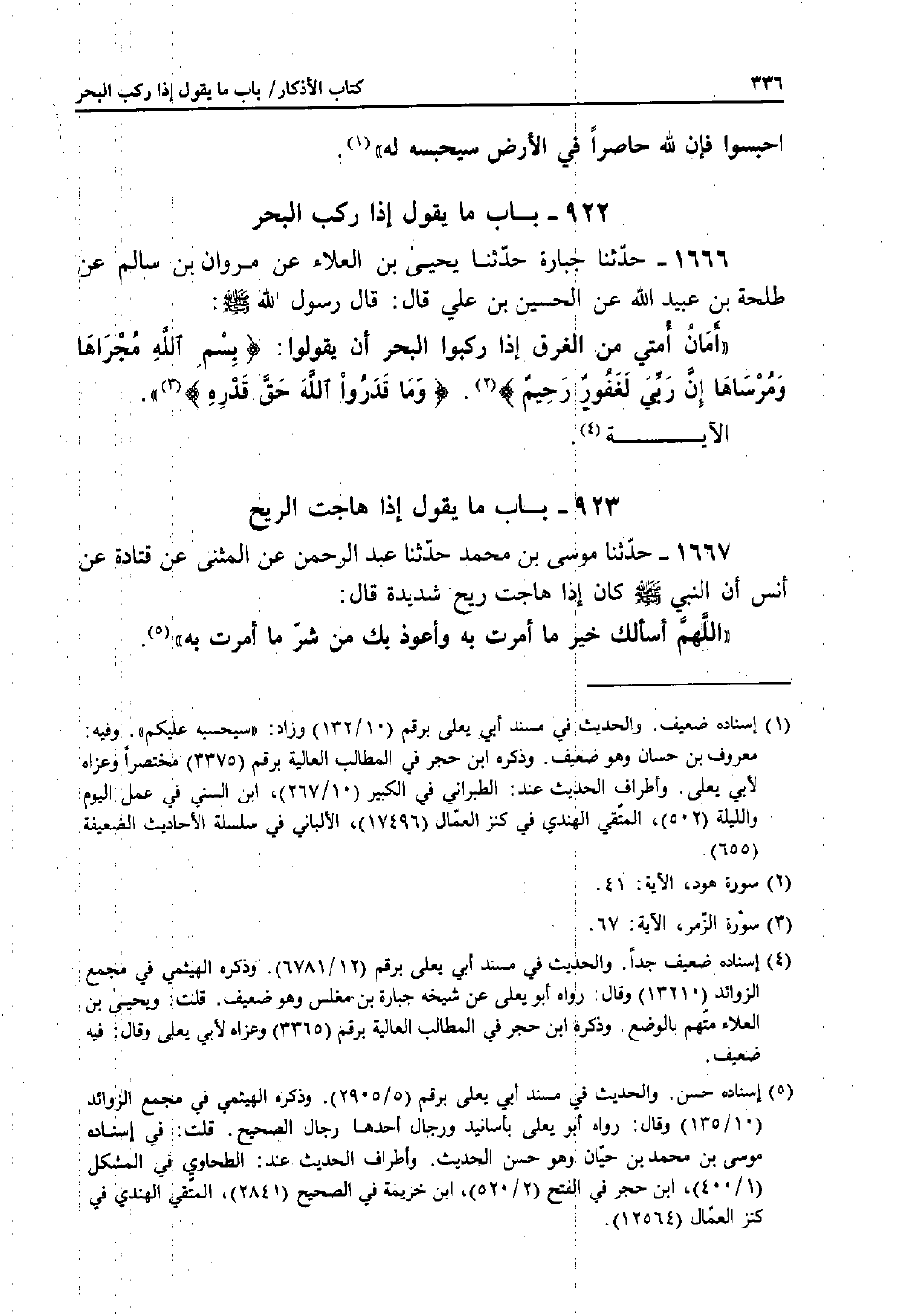 1666 - حَدَّثَنَا جُبَارَةُ، حَدَّثَنَا يَحْيَى بْنُ الْعَلاءِ، عَنْ مَرْوَانَ بْنِ سَالِمٍ، عَنْ طَلْحَةَ بْنِ عُبَيْدِ اللَّهِ، عَنِ الْحُسَيْنِ بْنِ عَلِيٍّ قَالَ: قَالَ رَسُولُ اللَّهِ صَلَّى اللَّهُ عَلَيْهِ وَسَلَّمَ: " أَمَانُ أُمَّتِي مِنَ الْغَرَقِ إِذَا رَكِبُوا الْبَحْرَ أَنْ يَقُولُوا: {بِسْمِ اللَّهِ مَجْرَاهَا وَمُرْسَاهَا إِنَّ رَبِّي لَغَفُورٌ رَحِيمٌ} [هود: 41] .