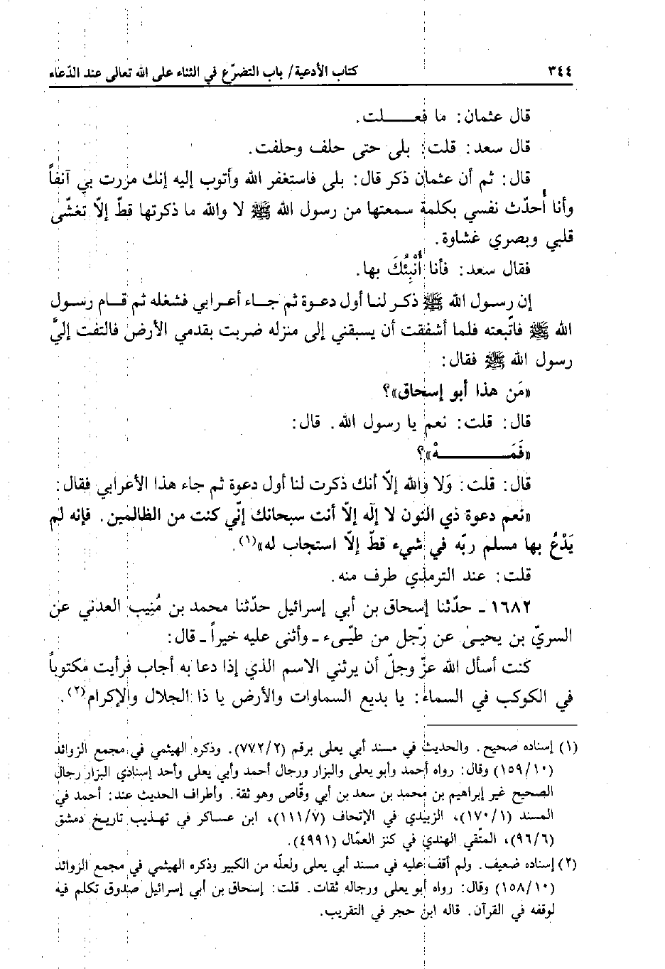 قَالَ: «فمَهْ» ؟ قَالَ: قُلْتُ: وَلا وَاللَّهِ إِلا أَنَّكَ ذَكَرْتَ لَنَا أَوَّلَ دَعْوَةٍ ثُمَّ جَاءَ الأَعْرَابِيُّ فَقَالَ: " نَعَمْ دَعْوَةُ ذِي النُّونِ: لا إِلَهَ إِلا أَنْتَ سُبْحَانَكَ إِنِّي كُنْتُ مِنَ الظَّالِمِينَ.