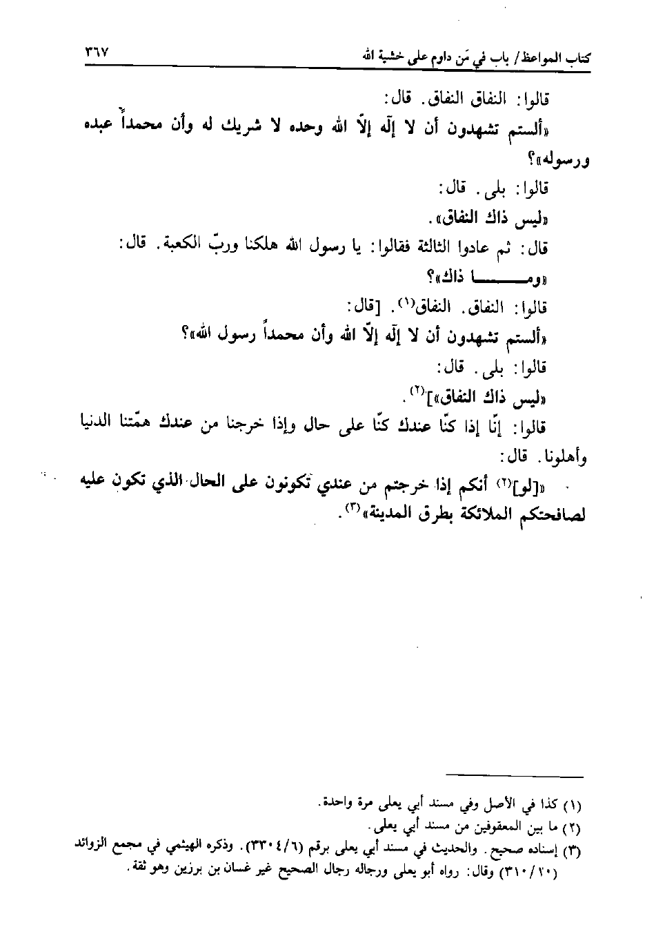 قَالَ: «أَلَسْتُمْ تَشْهَدُونَ أَنْ لا إِلَهَ إِلا اللَّهُ وَأَنَّ مُحَمَّدًا رَسُولُ اللَّهِ» ؟ قَالُوا: بَلَى.