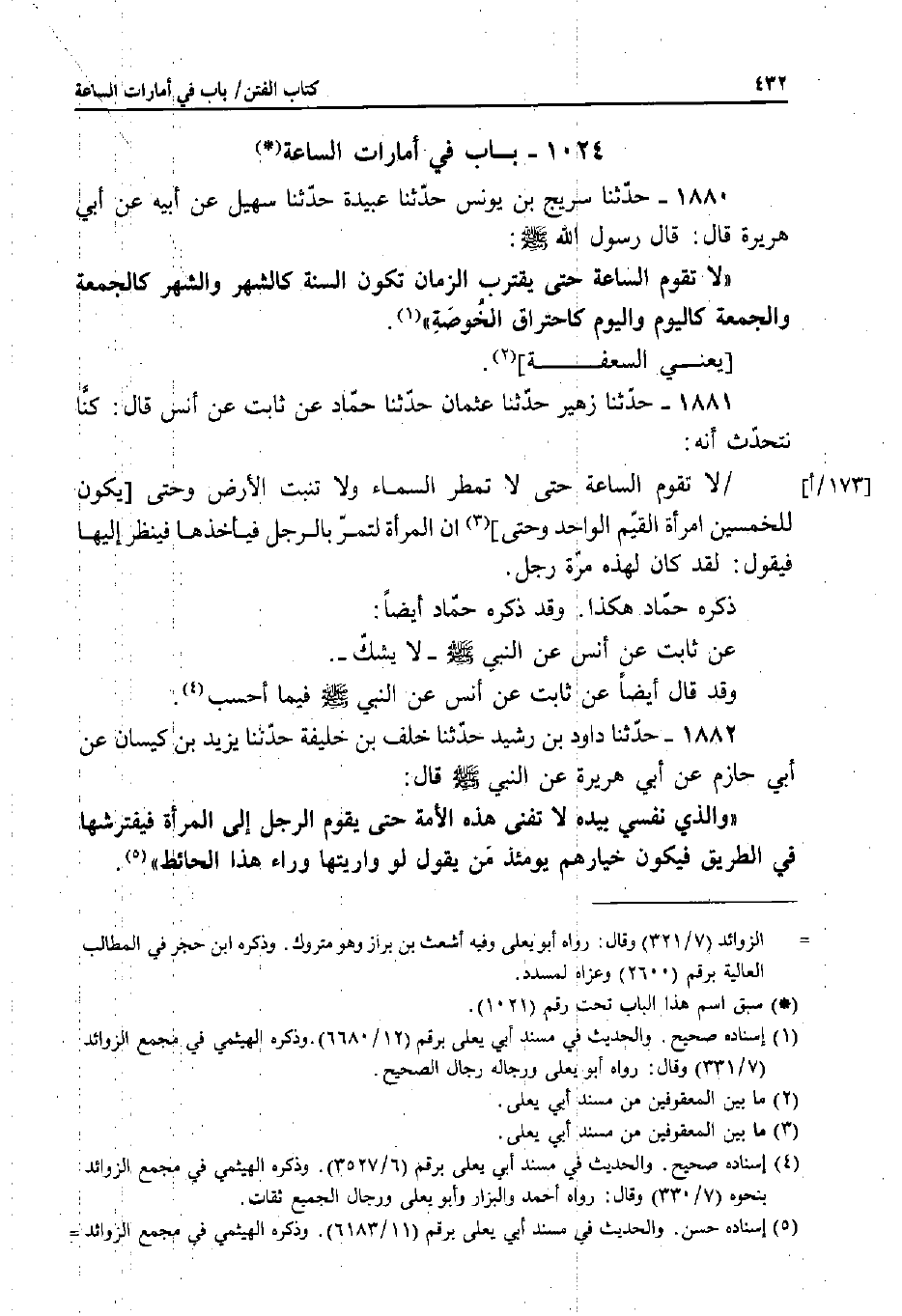 1881 - حَدَّثَنَا زُهَيْرٌ، حَدَّثَنَا عُثْمَانُ، حَدَّثَنَا حَمَّادٌ عَنْ ثَابِتٍ، عَنْ أَنَسٍ قَالَ: كُنَّا نَتَحَدَّثُ أَنَّهُ: لا تَقُومُ السَّاعَةُ حَتَّى لا تُمْطِرَ السَّمَاءُ وَلا تُنْبِتُ الأَرْضُ وَحَتَّى يَكُونَ لِلْخَمْسِينَ امْرَأَةً الْقَيِّمُ الْوَاحِدُ، وَحَتَّى إِنَّ الْمَرْأَةَ لَتَمُرُّ بِالرَّجُلِ فَيَأْخُذُهَا فَيَنْظُرُ إِلَيْهَا فَيَقُولُ: لَقَدْ كَانَ لَهَذِهِ مَرَّةً رَجُلٌ.