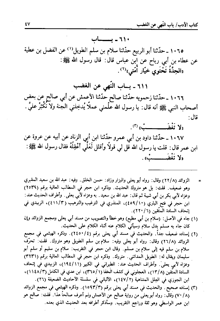1065 - حَدَّثَنَا أَبُو الرَّبِيعِ، حَدَّثَنَا سَلامُ بْنُ سَلْمٍ الطَّوِيلُ، عَنِ الْفَضْلِ بْنِ عَطِيَّةَ، عَنْ عَطَاءِ بْنِ أَبِي رَبَاحٍ، عَنِ ابْنِ عَبَّاسٍ قَالَ: قَالَ رَسُولُ اللَّهِ صَلَّى اللَّهُ عَلَيْهِ وَسَلَّمَ: «الْحِدَّةُ تَحْتَوِي خِيَارَ أُمَّتِي» .