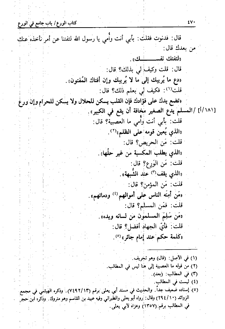 قُلْتُ: مَنْ الوَرِعُ؟ قَالَ: «الَّذِي يَقِفُ عِنْدَ الشُّبْهَةِ» .