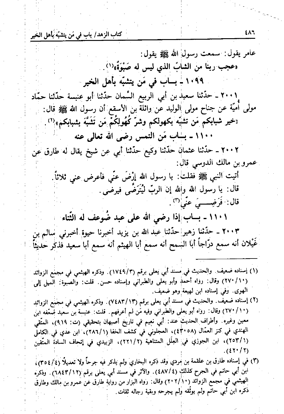 عَامِرٍ يَقُولُ: سَمِعْتُ رَسُولَ اللَّهِ صَلَّى اللَّهُ عَلَيْهِ وَسَلَّمَ يَقُولُ: «عَجِبَ رَبُّنَا مِنَ الشَّابِّ الَّذِي لَيْسَ لَهُ صَبْوَةٌ» .