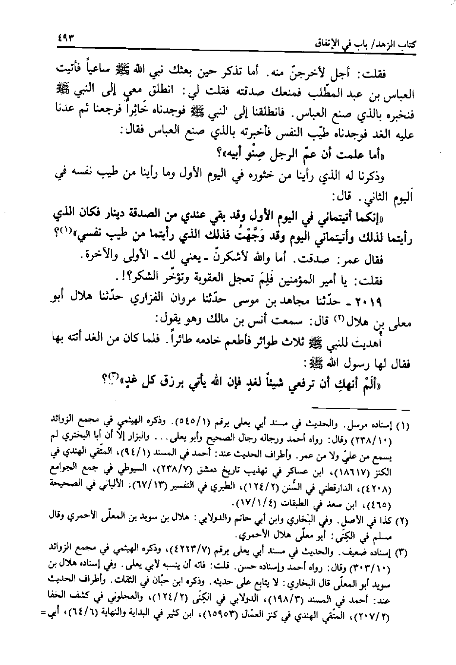 قَالَ: «إِنَّكُمَا أَتَيْتُمَانِي فِي الْيَوْمِ الأَوَّلِ وَقَدْ بَقِيَ عِنْدِي مِنَ الصَّدَقَةِ دِينَارٌ فَكَانَ الَّذِي رَأَيْتُمَا لِذَلِكَ وَأَتَيْتُمَانِي الْيَوْمَ وَقَدْ وَجَّهْتُ فَذَلِكَ الَّذِي رَأَيْتُمَا مِنْ طِيبِ نَفْسِي» ؟ فَقَالَ عُمَرُ: صَدَقْتَ.