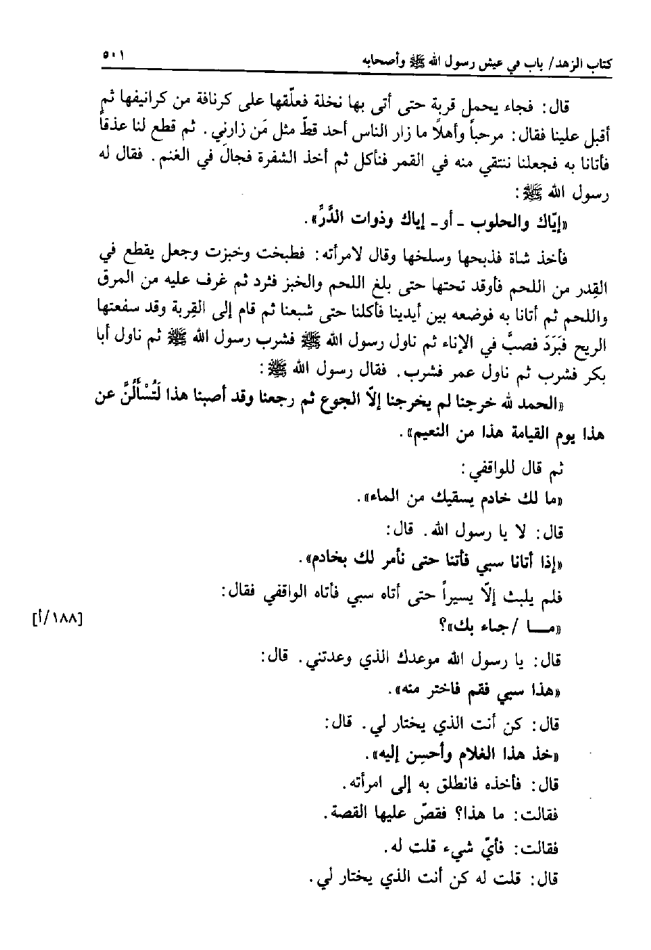 ثُمَّ قَالَ لِلْوَاقِفِيِّ: «مَا لَكَ خَادِمٌ يَسْقِيكَ الْمَاءَ» .