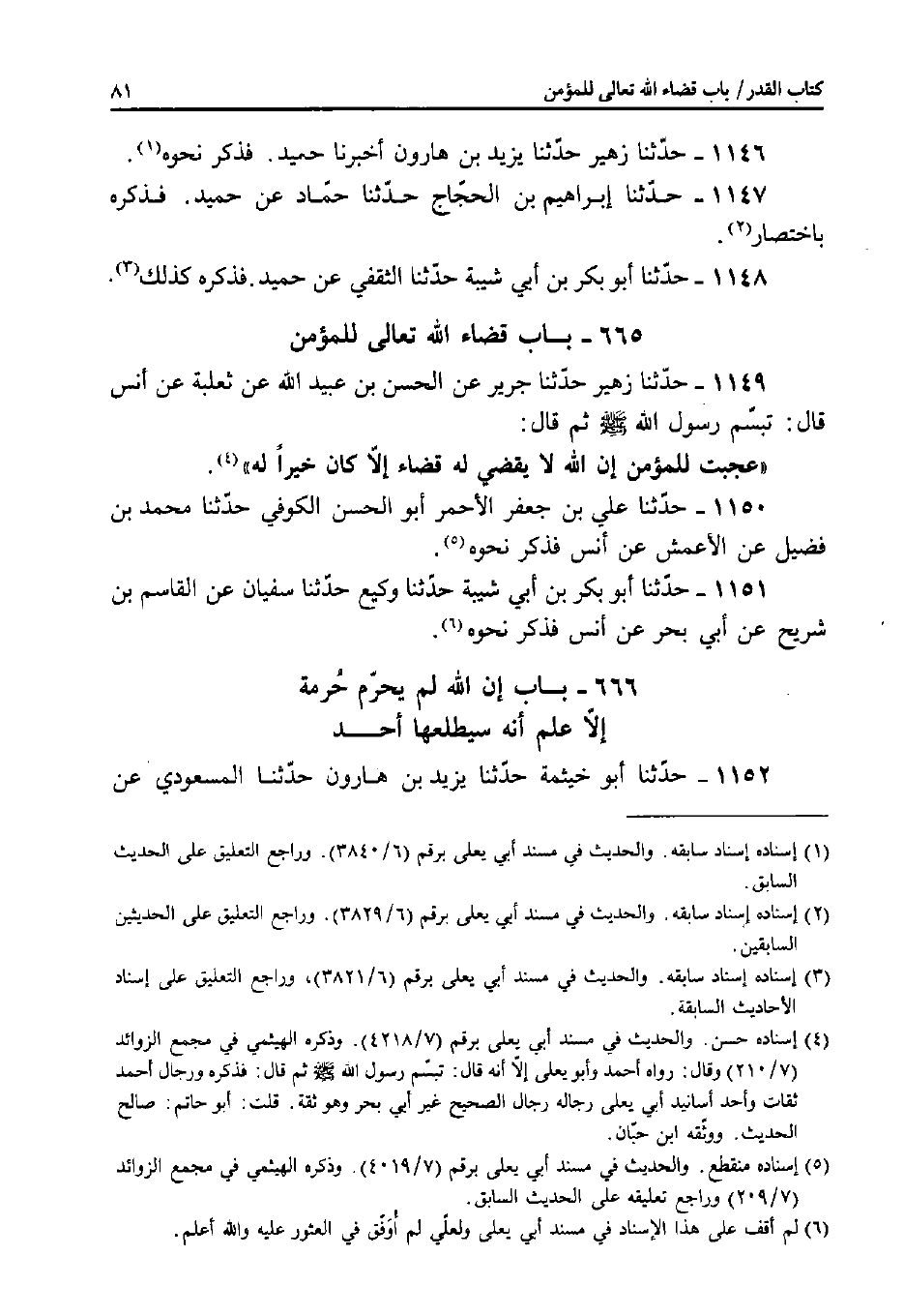 1149 - حَدَّثَنَا زُهَيْرٌ، حَدَّثَنَا جَرِيرٌ، عَنِ الْحَسَنِ بْنِ عُبَيْدِ اللَّهِ، عَنْ ثَعْلَبَةَ، عَنْ أَنَسٍ قَالَ: تَبَسَّمَ رَسُولُ اللَّهِ صَلَّى اللَّهُ عَلَيْهِ وَسَلَّمَ ثُمَّ قَالَ: «عَجِبْتُ لِلْمُؤْمِنِ إِنَّ اللَّهَ لا يَقْضِي لَهُ قَضَاءً إِلا كَانَ خَيْرًا لَهُ» .