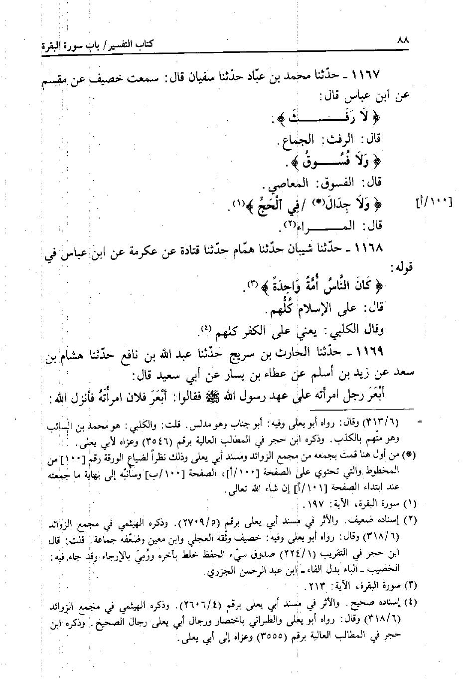 1167 - حَدَّثَنَا مُحَمَّدُ بْنُ عَبَّادٍ، حَدَّثَنَا سُفْيَانُ قَالَ: سَمِعْتُ خُصَيْفًا، عَنْ مِقْسَمٍ، عَنِ ابْنِ عَبَّاسٍ قَالَ: {لا رَفَثَ} .