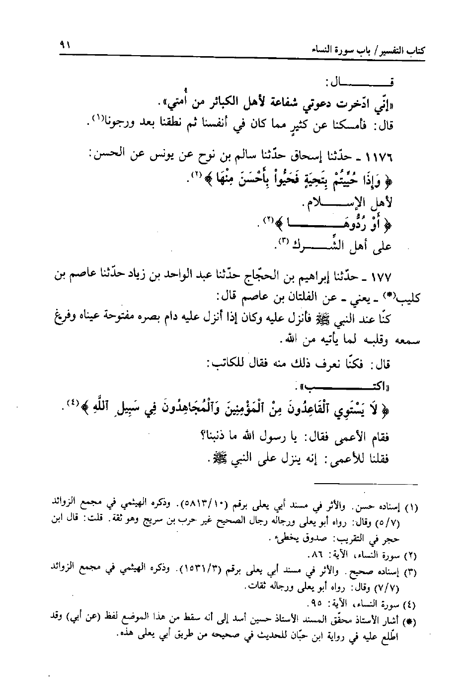 {لا يَسْتَوِي الْقَاعِدُونَ مِنَ الْمُؤْمِنِينَ غَيْرُ أُولِي الضَّرَرِ وَالْمُجَاهِدُونَ فِي سَبِيلِ اللَّهِ} [النساء: 95] .