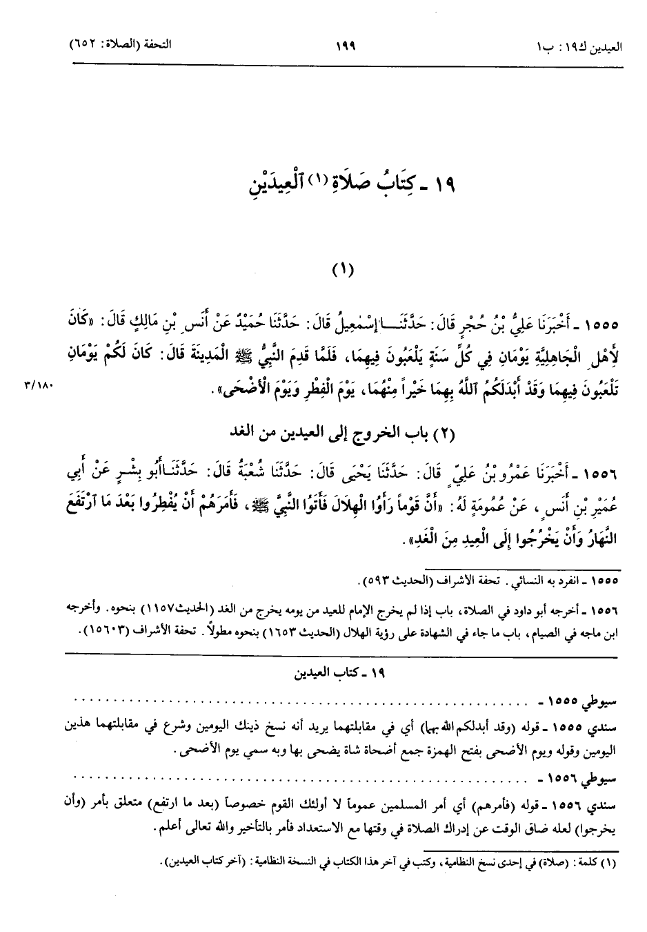 1555 - أَخْبَرَنَا عَلِيُّ بْنُ حُجْرٍ قَالَ أَنْبَأَنَا إِسْمَعِيلُ قَالَ حَدَّثَنَا حُمَيْدٌ عَنْ أَنَسِ بْنِ مَالِكٍ قَالَ كَانَ لِأَهْلِ الْجَاهِلِيَّةِ يَوْمَانِ فِي كُلِّ سَنَةٍ يَلْعَبُونَ فِيهِمَا فَلَمَّا قَدِمَ النَّبِيُّ صَلَّى اللَّهُ عَلَيْهِ وَسَلَّمَ الْمَدِينَةَ قَالَ كَانَ لَكُمْ يَوْمَانِ تَلْعَبُونَ فِيهِمَا وَقَدْ أَبْدَلَكُمْ اللَّهُ بِهِمَا خَيْرًا مِنْهُمَا يَوْمَ الْفِطْرِ وَيَوْمَ الْأَضْحَى