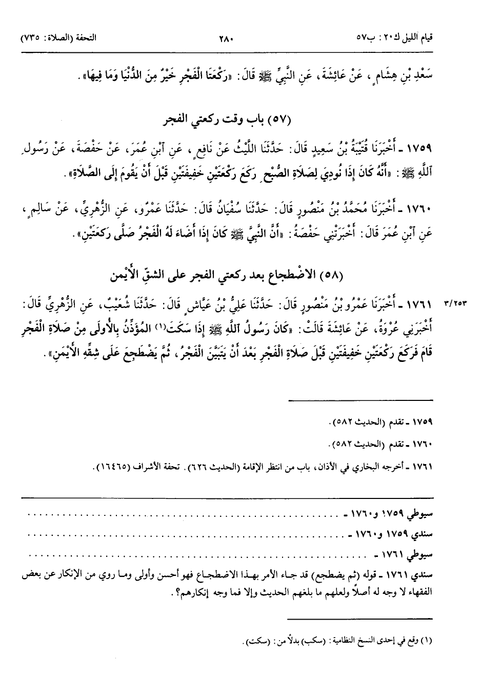 1760 - أَخْبَرَنَا مُحَمَّدُ بْنُ مَنْصُورٍ قَالَ حَدَّثَنَا سُفْيَانُ قَالَ حَدَّثَنَا عَمْرٌو عَنْ الزُّهْرِيِّ عَنْ سَالِمٍ عَنْ ابْنِ عُمَرَ قَالَ أَخْبَرَتْنِي حَفْصَةُ أَنَّ النَّبِيَّ صَلَّى اللَّهُ عَلَيْهِ وَسَلَّمَ كَانَ إِذَا أَضَاءَ لَهُ الْفَجْرُ صَلَّى رَكْعَتَيْنِ